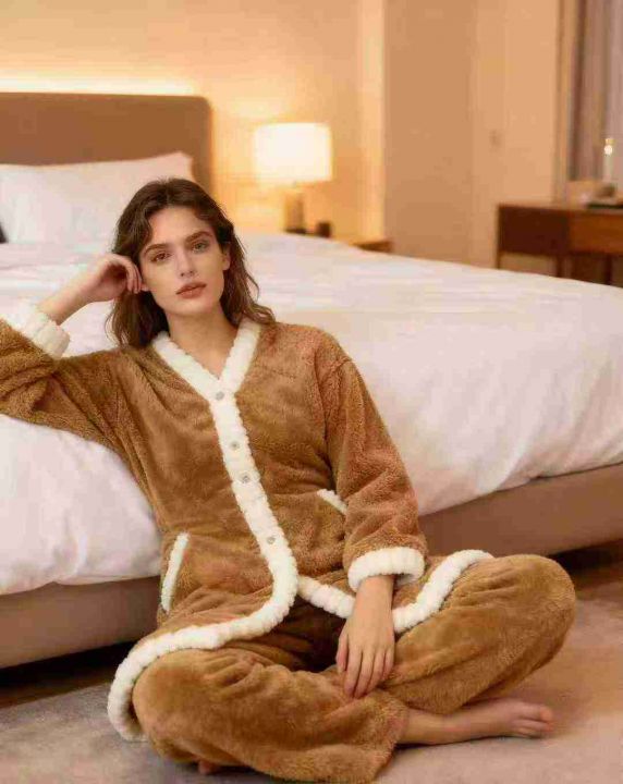 外贸家居套装二件套,珊瑚绒睡袍高级睡衣浴袍套装,可...