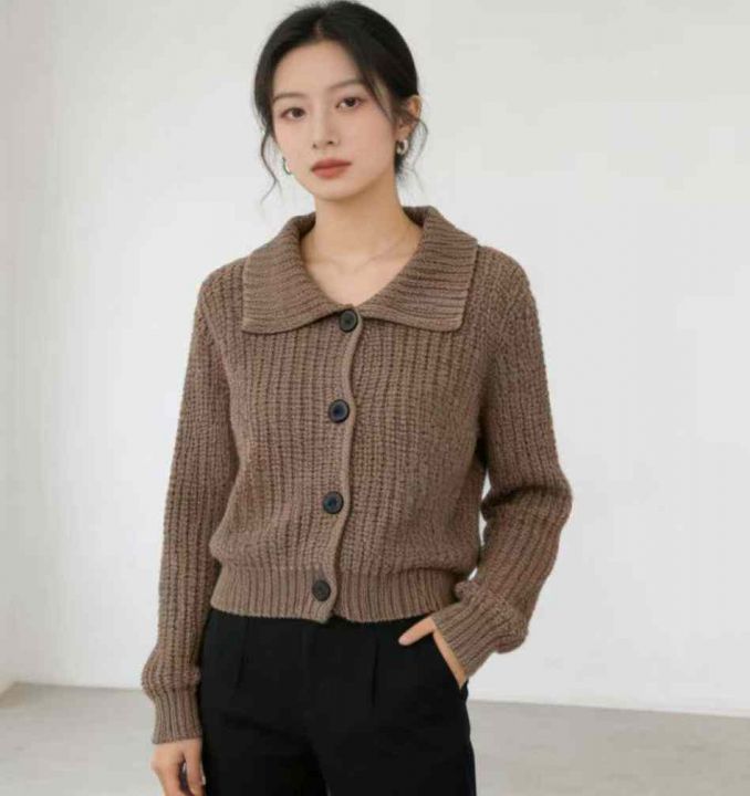 秋冬新款宽松百搭水磨设计款针织毛衣开衫,独立包装,...