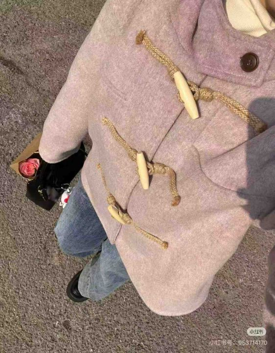 85件2025年新款牛角扣设计双面呢女冬季粉色休闲连帽短...
