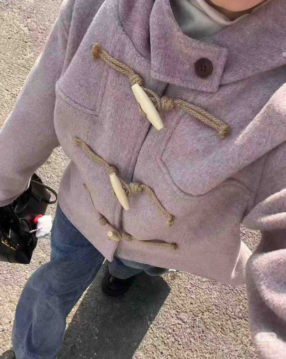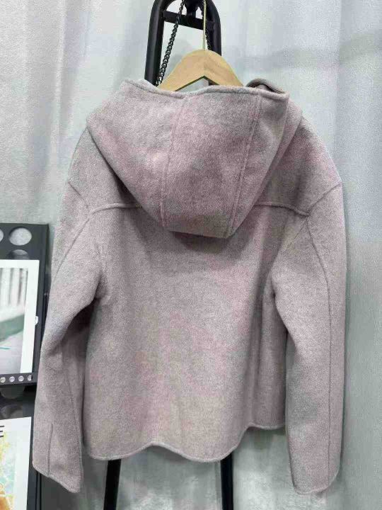 85件2025年新款牛角扣设计双面呢女冬季粉色休闲连帽短款大衣,码数S—XL,独立包装,双面呢,全清24.8分货加1