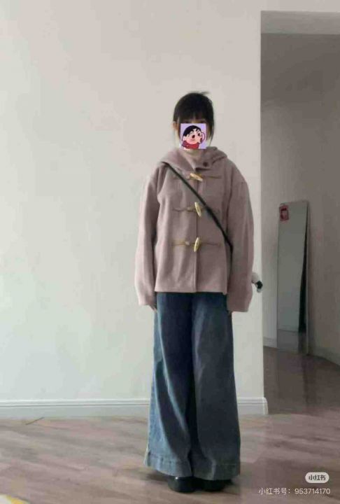 85件2025年新款牛角扣设计双面呢女冬季粉色休闲连帽短...