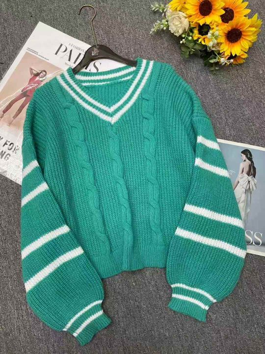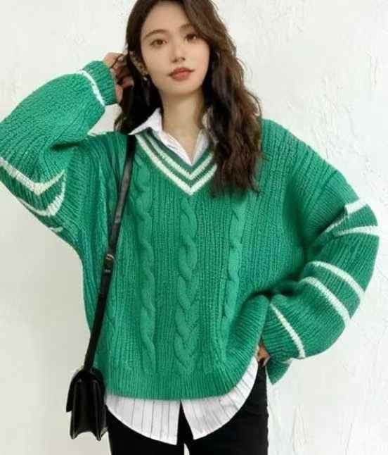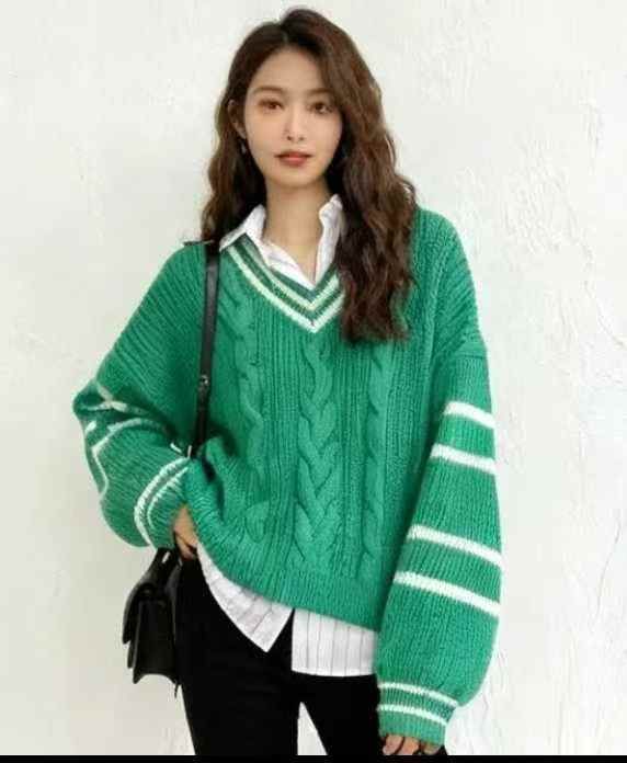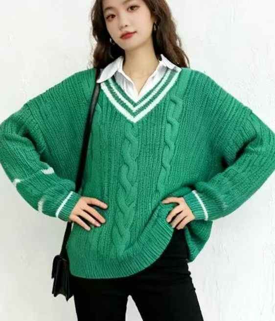 秋冬新款宽松慵懒风大板麻花V领北极绒套头毛衣,独立...