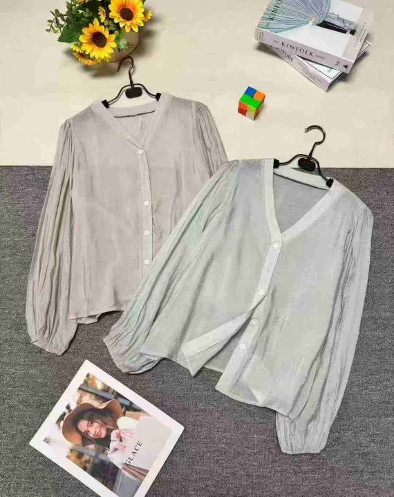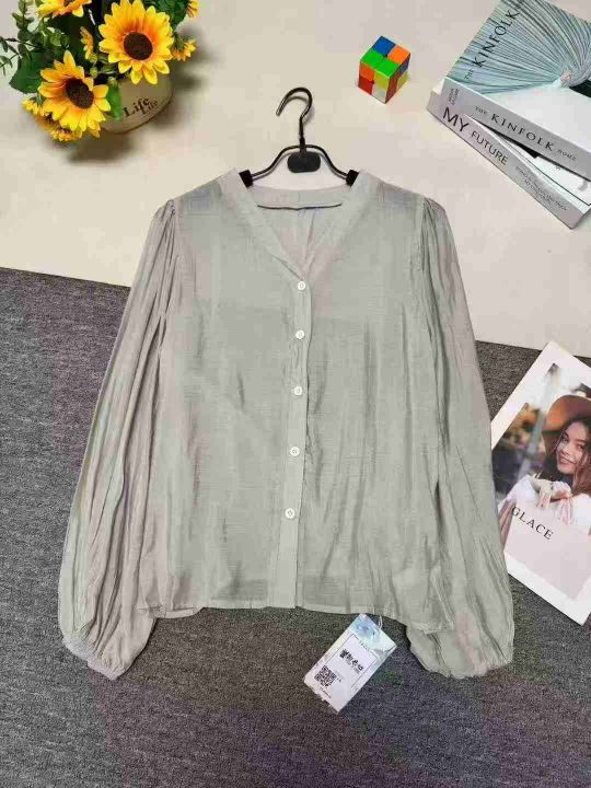 灯笼袖衬衫女高级感轻奢V领独特绝美雪纺小衫上衣,整款两色,品质好,有独立包装带吊牌,码数S-XL,数量448件左右,全清6.8元秒,分货➕1。