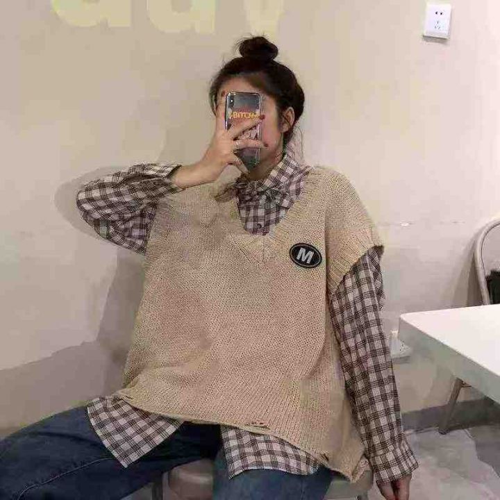 秋冬新款宽松慵懒风百搭韩系叠穿套头毛衣马甲,独立包装,均码面料柔软舒适...