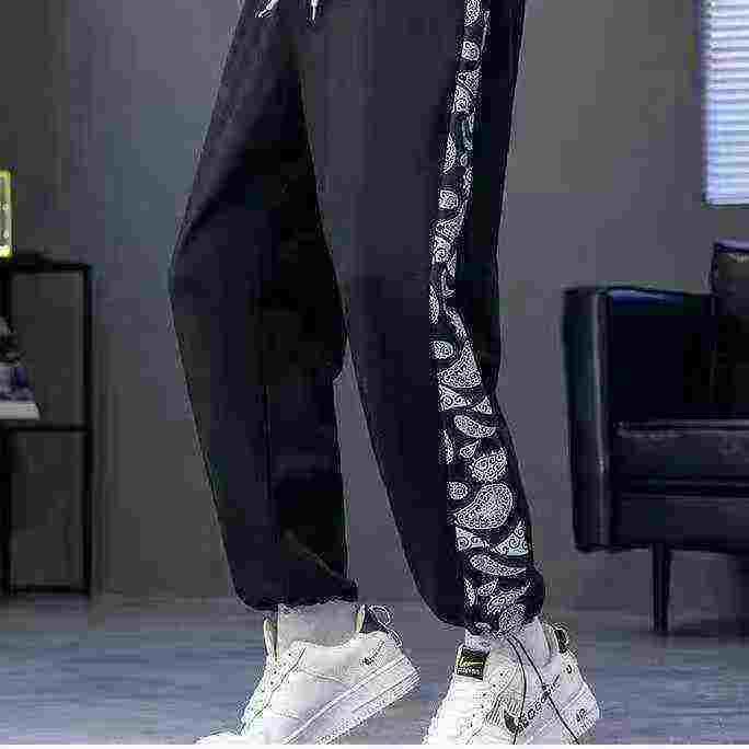 男士潮流拼色百搭阔腿休闲裤,脚口抽绳设计,可束脚可...