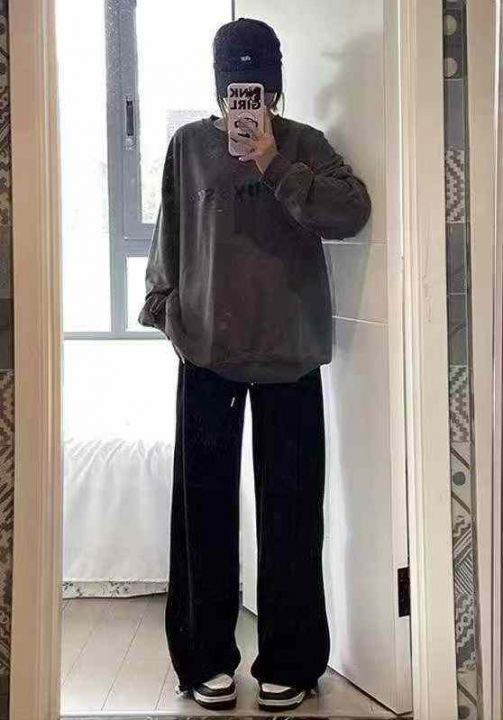 卡其色喇叭裤工装裤高级感美式阔腿拖地微喇女牛仔裤,码数XS-XL,独立包装...