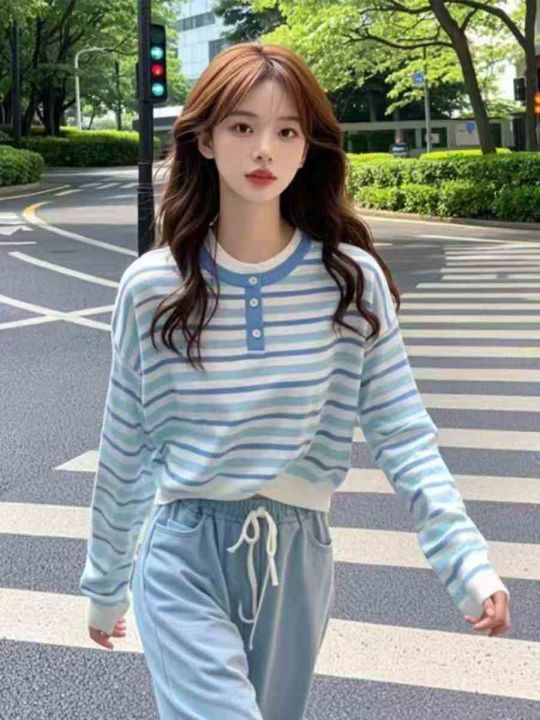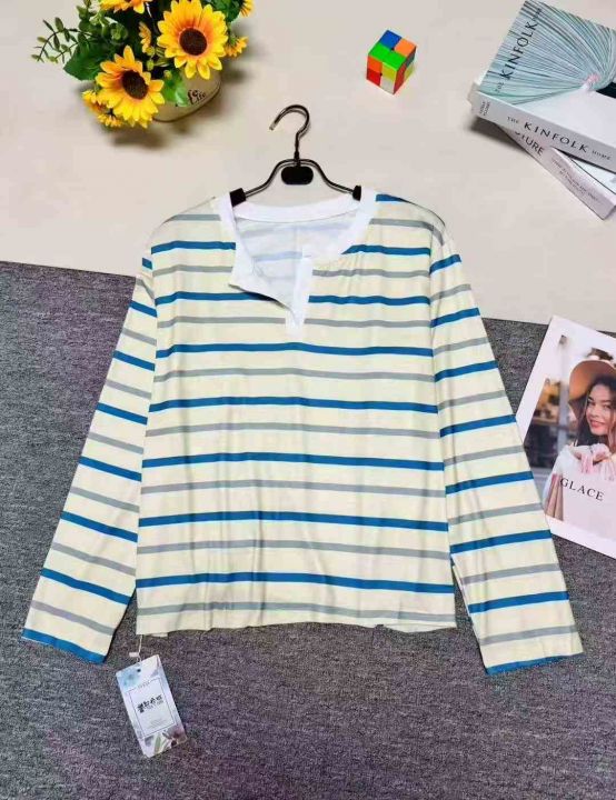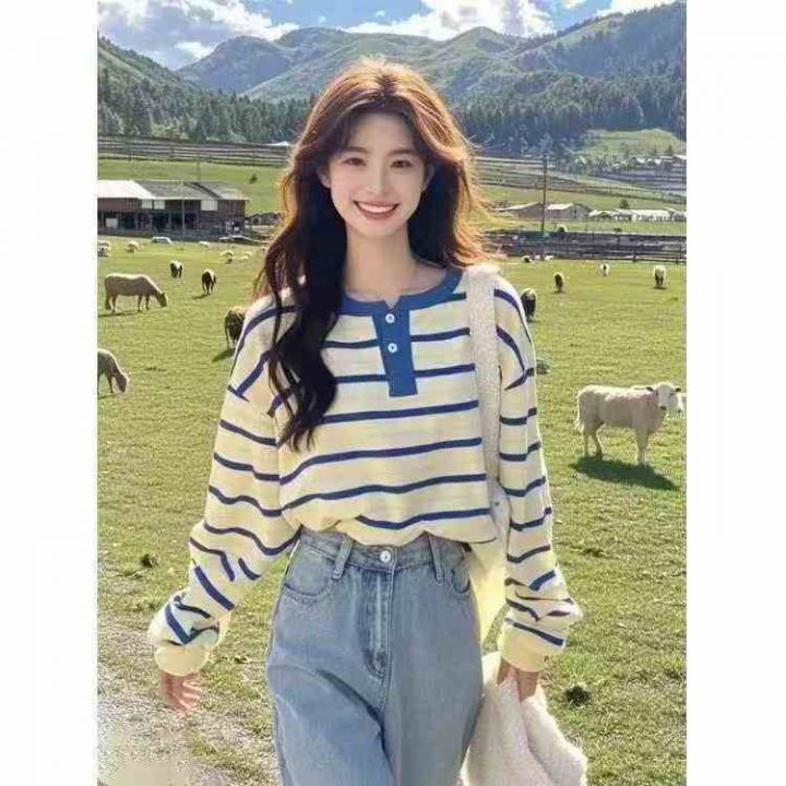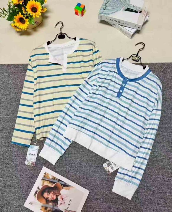 春秋独特别致条纹假两件辣妹宽松纯棉长袖上衣,整款两色,品质好,有独立包装带吊牌,码数S-XL,数量200件,全清5.8元秒。
