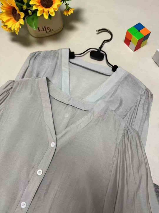 灯笼袖衬衫女高级感轻奢V领独特绝美雪纺小衫上衣,整款两色,品质好,有独立包装带吊牌,码数S-XL,数量448件左右,全清6.8元秒,分货➕1。