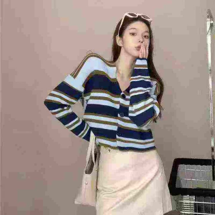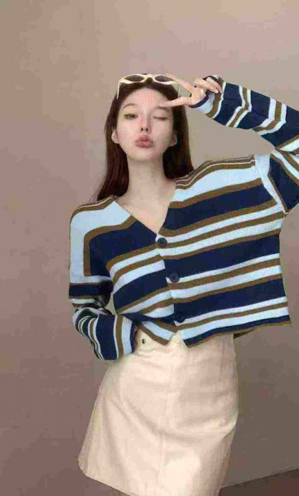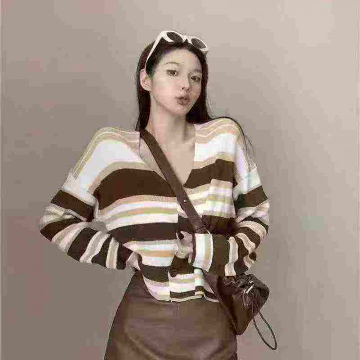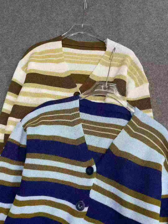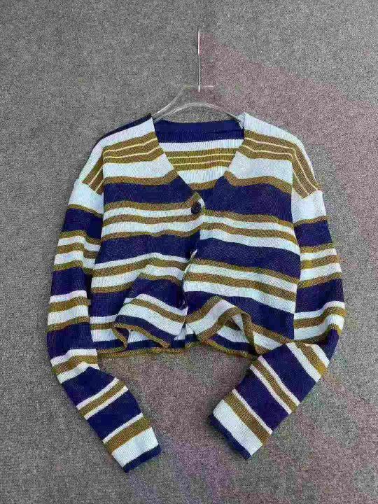 软糯撞色条纹宽松慵懒风百搭针织毛衣开衫,均码面料软糯舒适弹力大,2色50件,独立包装,全清7.5,
