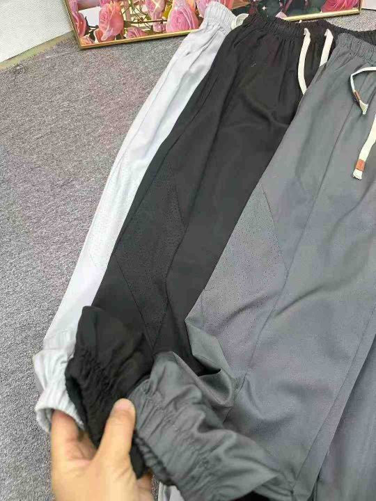 冰丝休闲裤男士夏季薄款2025新款男裤束脚裤子速干运动裤,整款3色,侧边有透气设计,M-4XL码,750件左右,独立包装,货品干净,7.8清,分货加加1