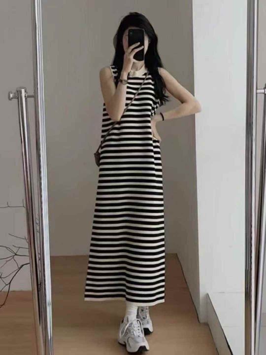 春夏新款宽松百搭开叉冰丝针织背心连衣裙,独立包装,...