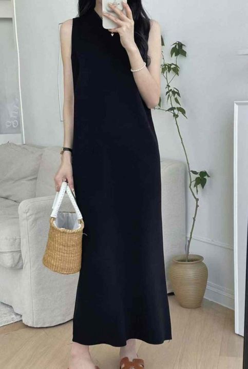 春夏新款宽松百搭开叉冰丝针织背心连衣裙,独立包装,...