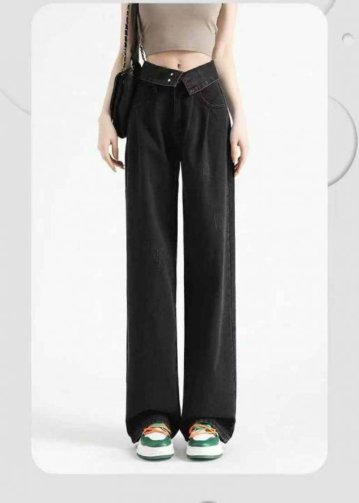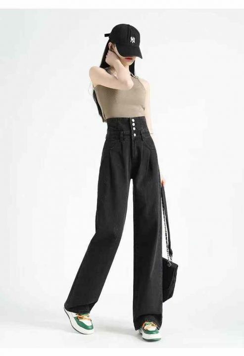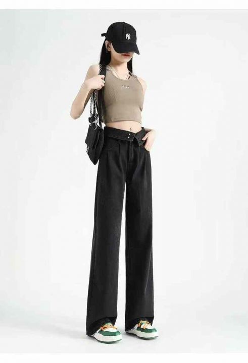 秋冬新款洗水棉网红多扣直筒阔腿牛仔长裤,独立包装带...
