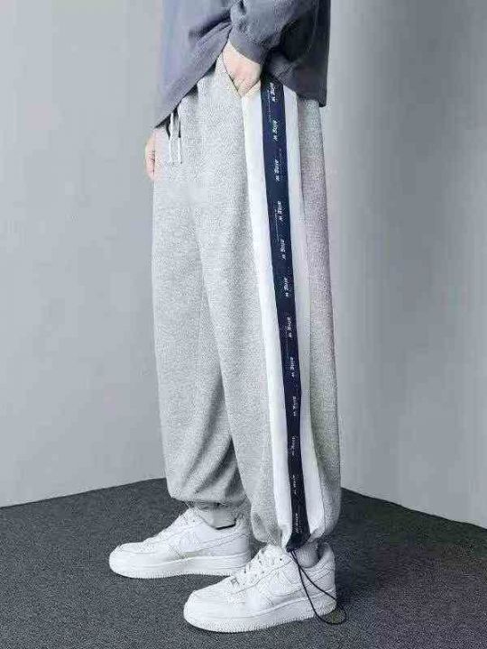 潮流拼接休闲卫裤港风薄款抽绳束脚裤宽松百搭直筒裤,...