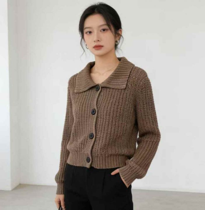 秋冬新款宽松百搭水磨设计款针织毛衣开衫,独立包装,...