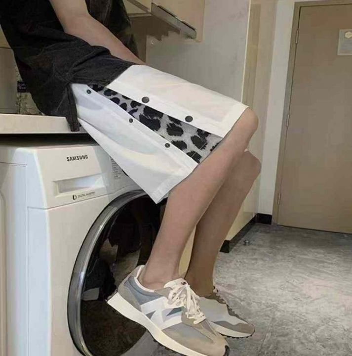 豹纹排扣短裤96件1.9,抽绳松紧腰,有口袋,拼接设计...