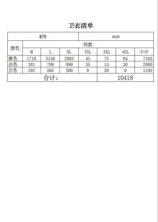 一万多件光板圆领棉卫衣,码数M-4XL,图九是清单,5件...