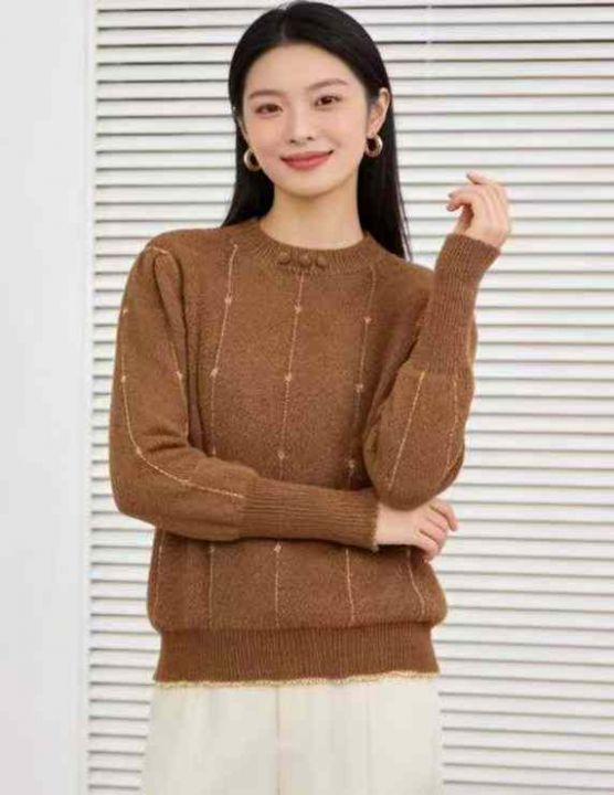 秋冬新款宽松百搭设计款圆领套头毛衣,独立包装,均码...