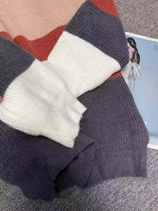 秋冬新款宽松慵懒风撞色条纹北极绒套头毛衣,独立包装...
