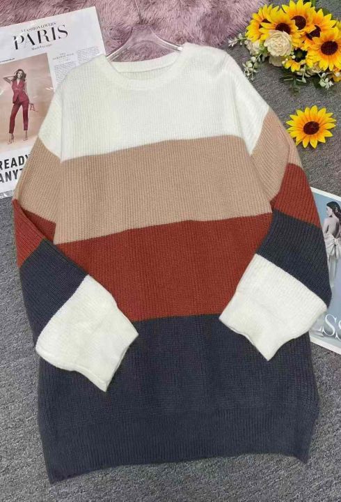 秋冬新款宽松慵懒风撞色条纹北极绒套头毛衣,独立包装,面料软糯厚实大版型,码数 2XL-5XL码,50件,全清9.9元超低价秒杀!