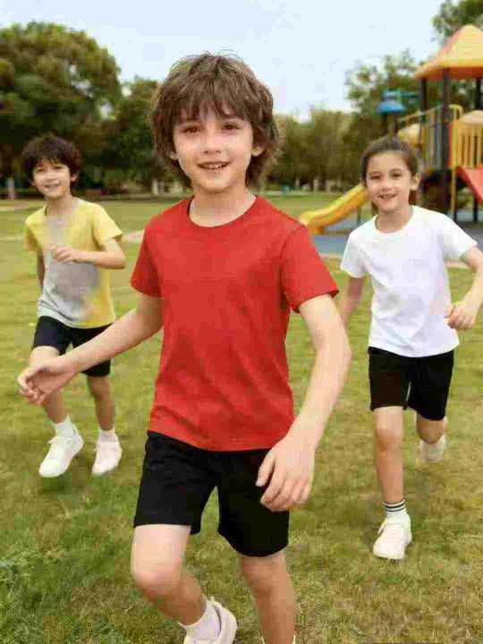童装红色纯棉光板短袖T恤,数量850件左右,尺码110--160,后领包边到肩,十件一包装,有码数清单,大货干净整洁