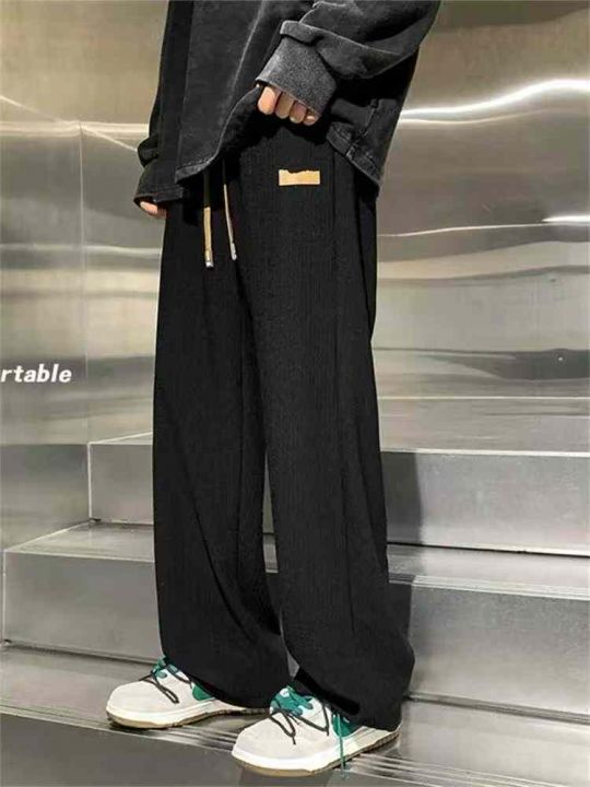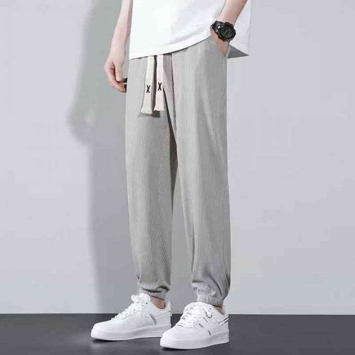 冰丝休闲裤男士夏季薄款垂感阔腿宽松束脚/直筒休闲裤...