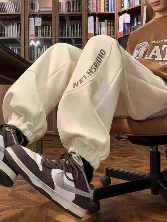 ☕️华棉卫裤潮牌加绒卫裤拼接美式运动裤休闲长裤潮流束脚裤货号E95# 601条全清9.8元,分货➕1元,码数M到3XL,单款杏色,可独立包装,内里➕宝宝绒,质量很好~