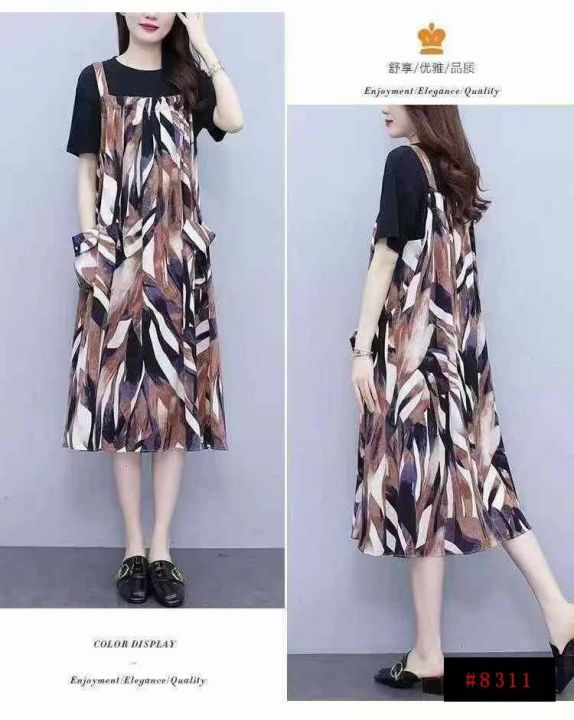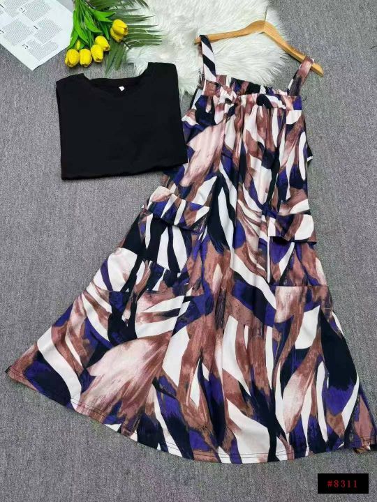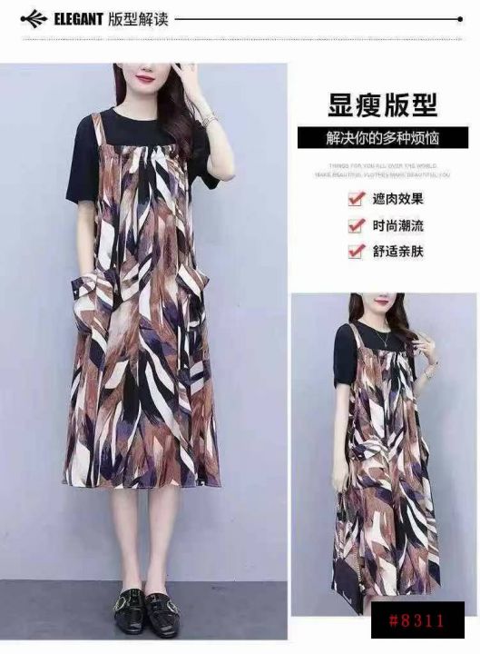 背带裙套装女遮肚显瘦减龄洋气宽松裙子两件套,独立包装,单款单色,码数4/5/7,数量76套,货号1127#58@_@