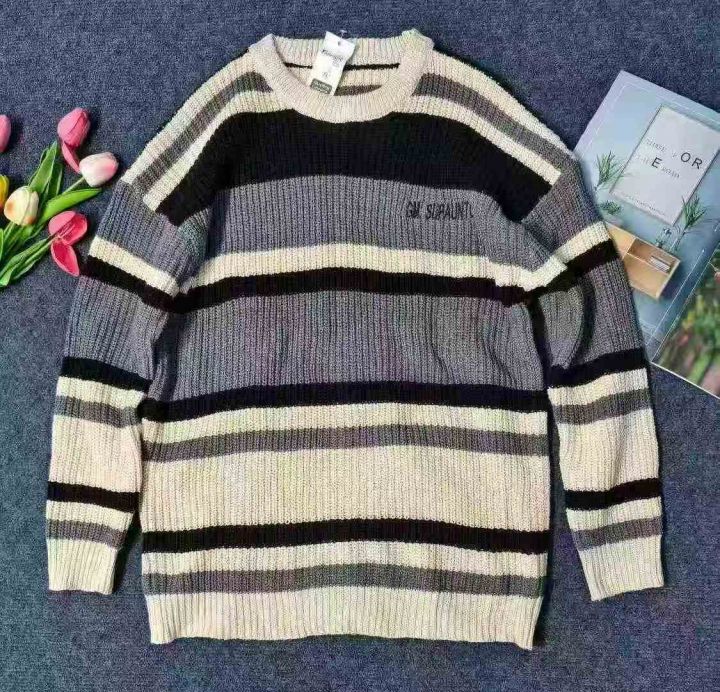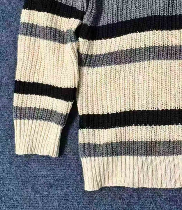 ☆8.8元,秋冬季慵懒风情侣百搭条纹宽松圆领毛衣,男女同款,100件,M-2XL,独立包装吊牌,全清8.8元