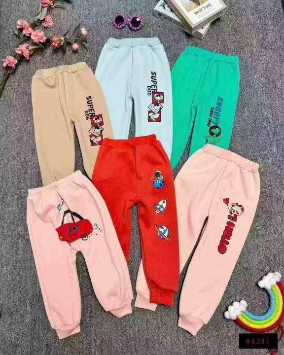 5000件左右秋冬男女童新款双面加绒保暖一体绒运动印花刺绣卫裤,双面绒80%一体绒20%。整款。可穿3~8岁左右。4件一包。整首齐码。亏本清。5.9秒杀@_@
