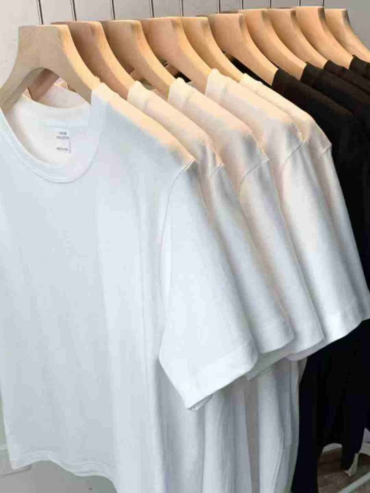 6.5清1370件100%纯棉180克黑白纯色短袖T恤内搭纯色圆领夏季体恤上衣 后领包...