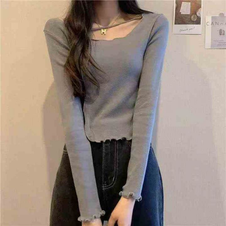秋冬新款网红爆款方领木耳边开叉针织套头毛衣,独立包...