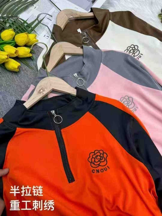 休闲运动套装立领刺绣跑步服拼色卫衣两件套,独立包装,1-6码,数量126套,大货橘红色为主,货号1126#59