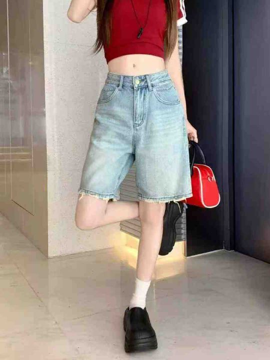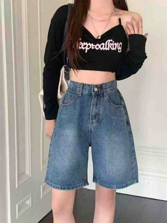夏季新款高品质洗水棉网红爆款阔腿牛仔5分裤,独立包...