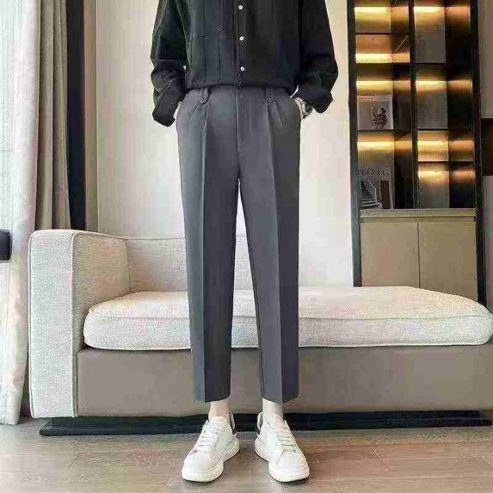 高级垂坠感西裤男休闲九分西裤直筒宽松痞帅半松紧腰男士西装裤 独立包装 码...