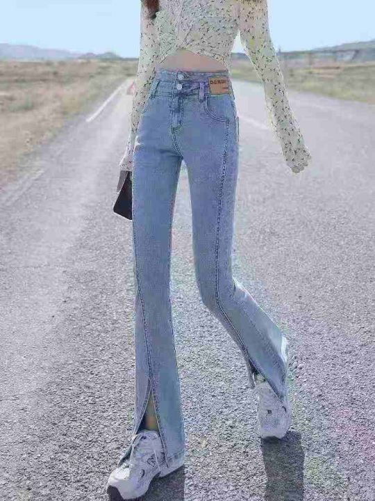 开叉高弹力牛仔裤女2025年新款高腰显瘦设计感微喇叭裤,数量209件,码数25-31,独立包装,货品干净。