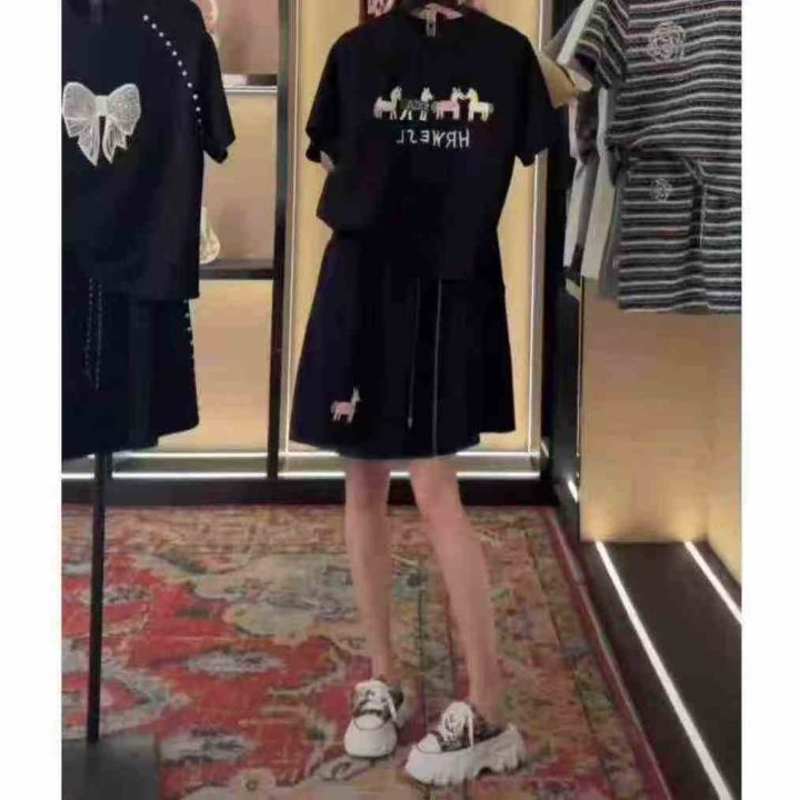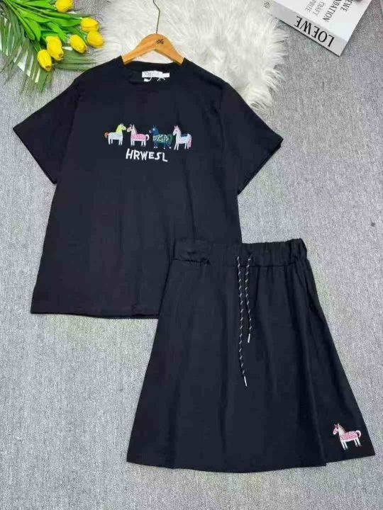 时尚设计感刺绣小马短袖T恤显瘦半身裙裤夏季洋气减龄两件套,独立包装,码数1/3/4/5码,数量179套,货号1122#46。 货号:1323