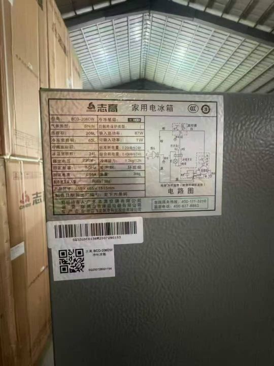 志高206升三开门冰箱2500台,处理5xx一台。...