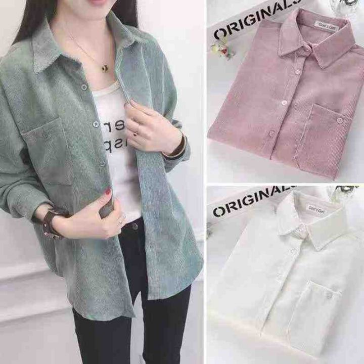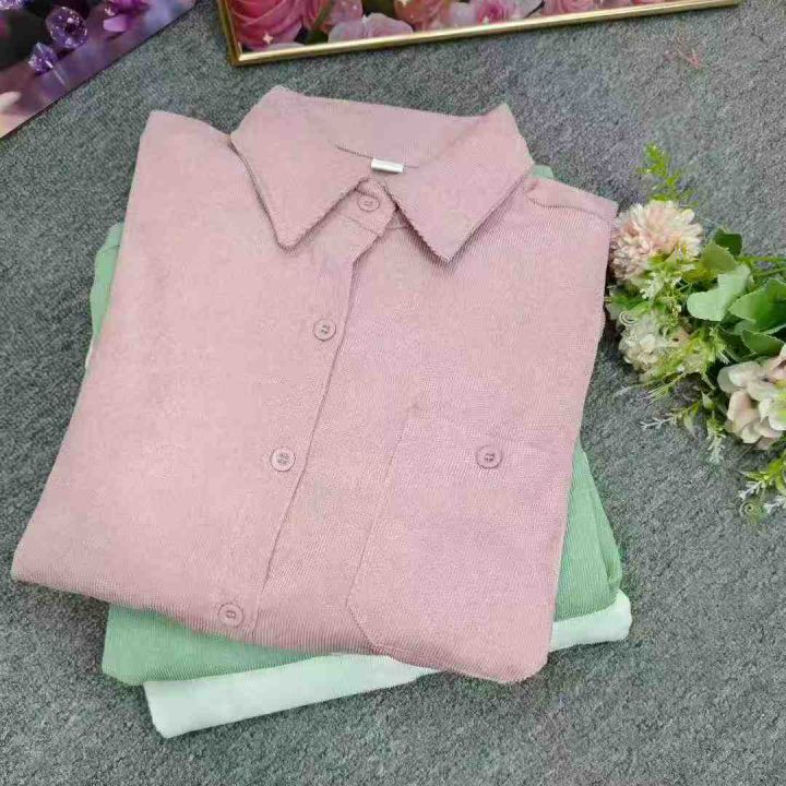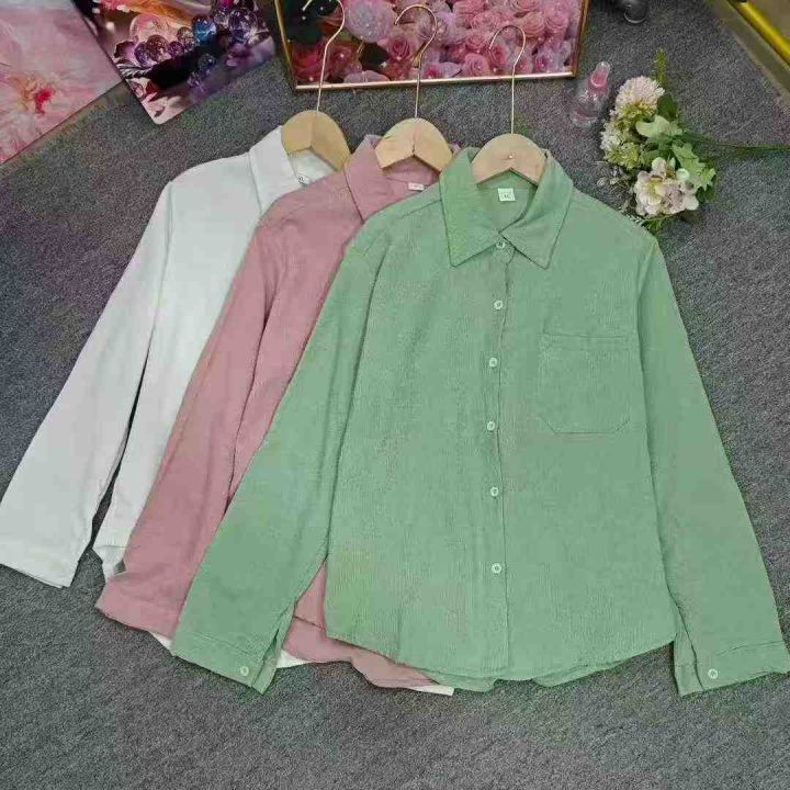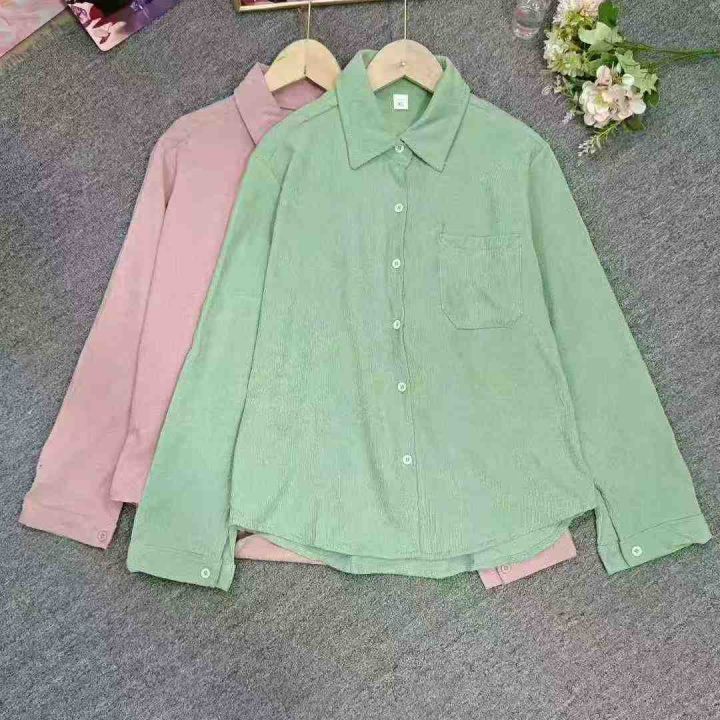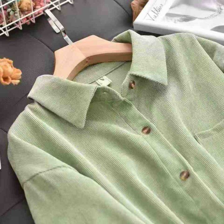 韩版宽松灯芯绒衬衫女2025新款长袖百搭口袋外套潮,独立包装,整款3色(绿色多)S-2xl码,2500件左右,7.9元清,分货➕1