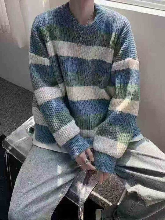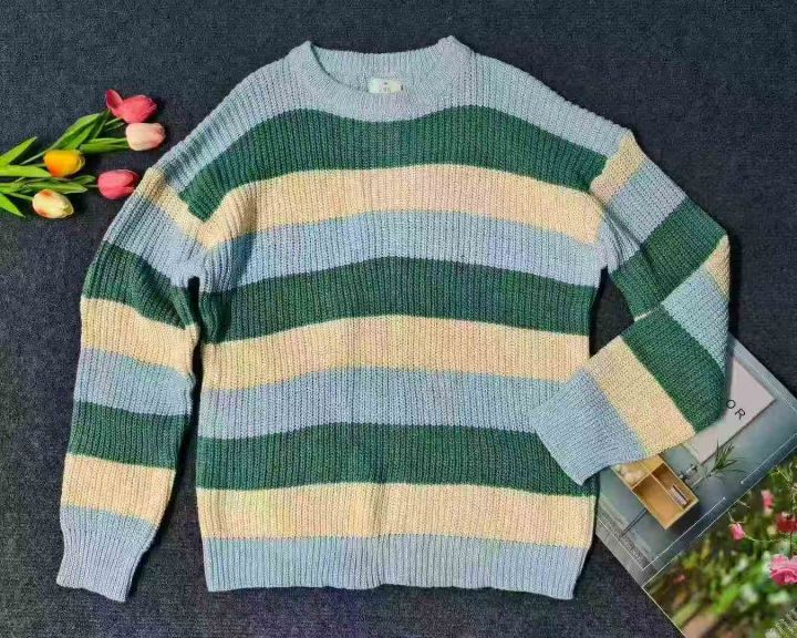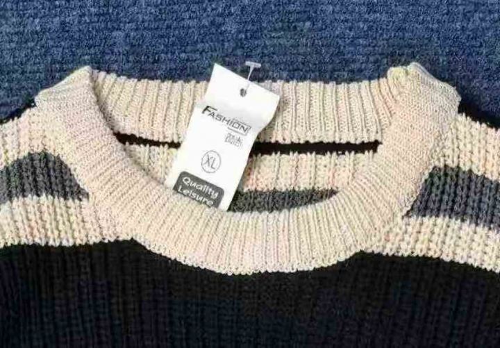 ☆8.8元,秋冬季慵懒风情侣百搭条纹宽松圆领毛衣,男女同款,100件,M-2XL,独立包装吊牌,全清8.8元