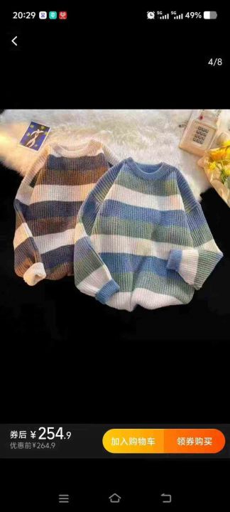 ☆8.8元,秋冬季慵懒风情侣百搭条纹宽松圆领毛衣,男...