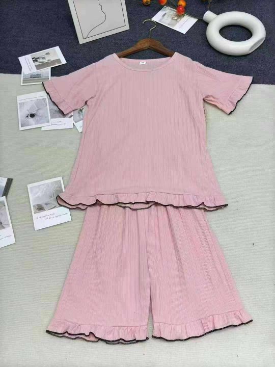 夏季纯棉薄款短袖女童睡衣宝宝空调服中大童女孩卡通家居服套装,数量406套,独立包装,码数10-18(相当于110-170),全清7.9元。 货号:1323