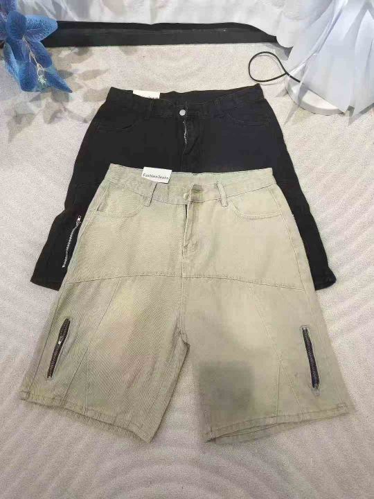 男夏季水洗潮流宽松高街拉链牛仔短裤 数量470件左右 码数S--3XL 独立包装带吊牌 货品干净整洁。 货号:1323