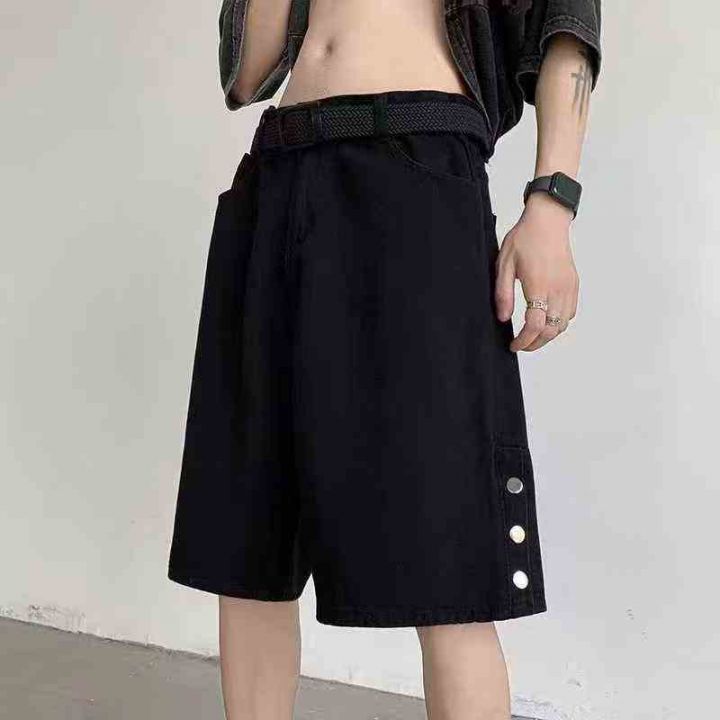 全清8.8男士夏季美式高街复古潮牌排扣开衩牛仔短裤 ...