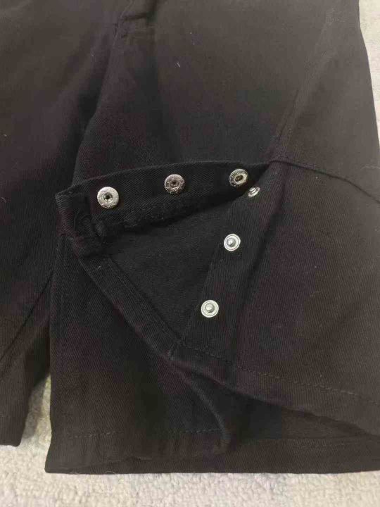 男士夏季美式高街复古潮牌排扣开衩牛仔短裤 数量380件左右 码数S--3XL 独立包装带吊牌 大货整洁质佳。 货号:1323