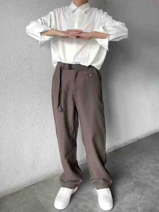韩版ins垂感西裤男休闲轻熟风痞帅宽松直筒阔腿长裤帅气男士西装裤 裤头可调节设计 独立包装 码数S-3XL 数量570件左右 全清8.8分货加0.5