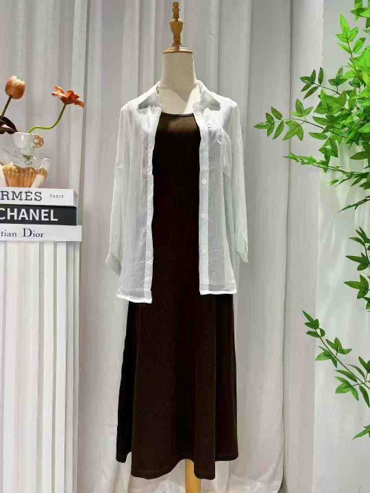 韩系慵懒风轻薄防晒衬衫宽松外套开衫和背心长款连衣裙套装两件套 独立包装 均码穿100-120斤 数量100套左右 全清9.9