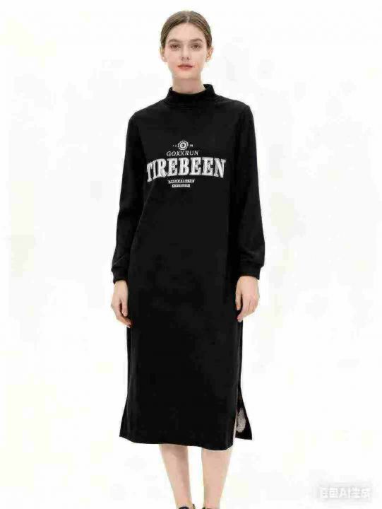 韩版学院风字母卫衣裙宽松休闲甜美长裙温柔长袖加绒连...