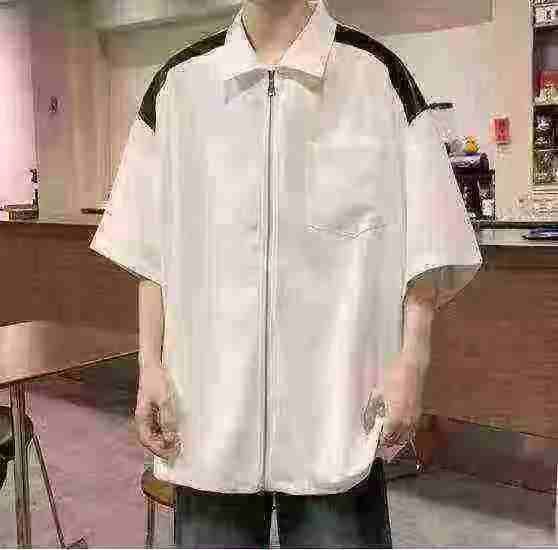 衬衫男夏季小众设计感撞色短袖衬衣美式高街潮牌宽松休闲外套