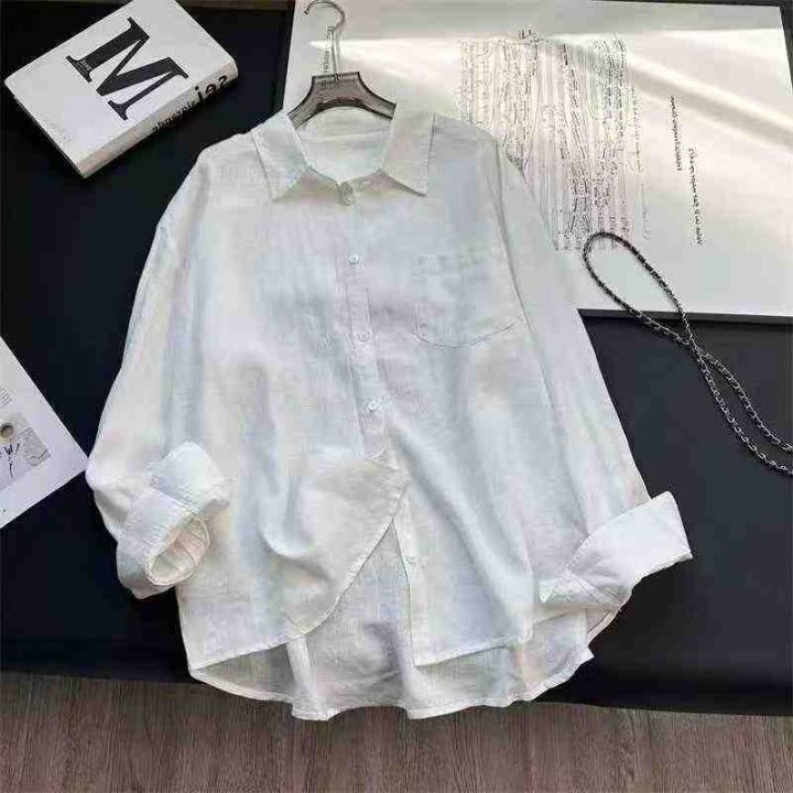 [發]女装高级感白色亚麻衬衫200件左右宽松薄款慵懒风...